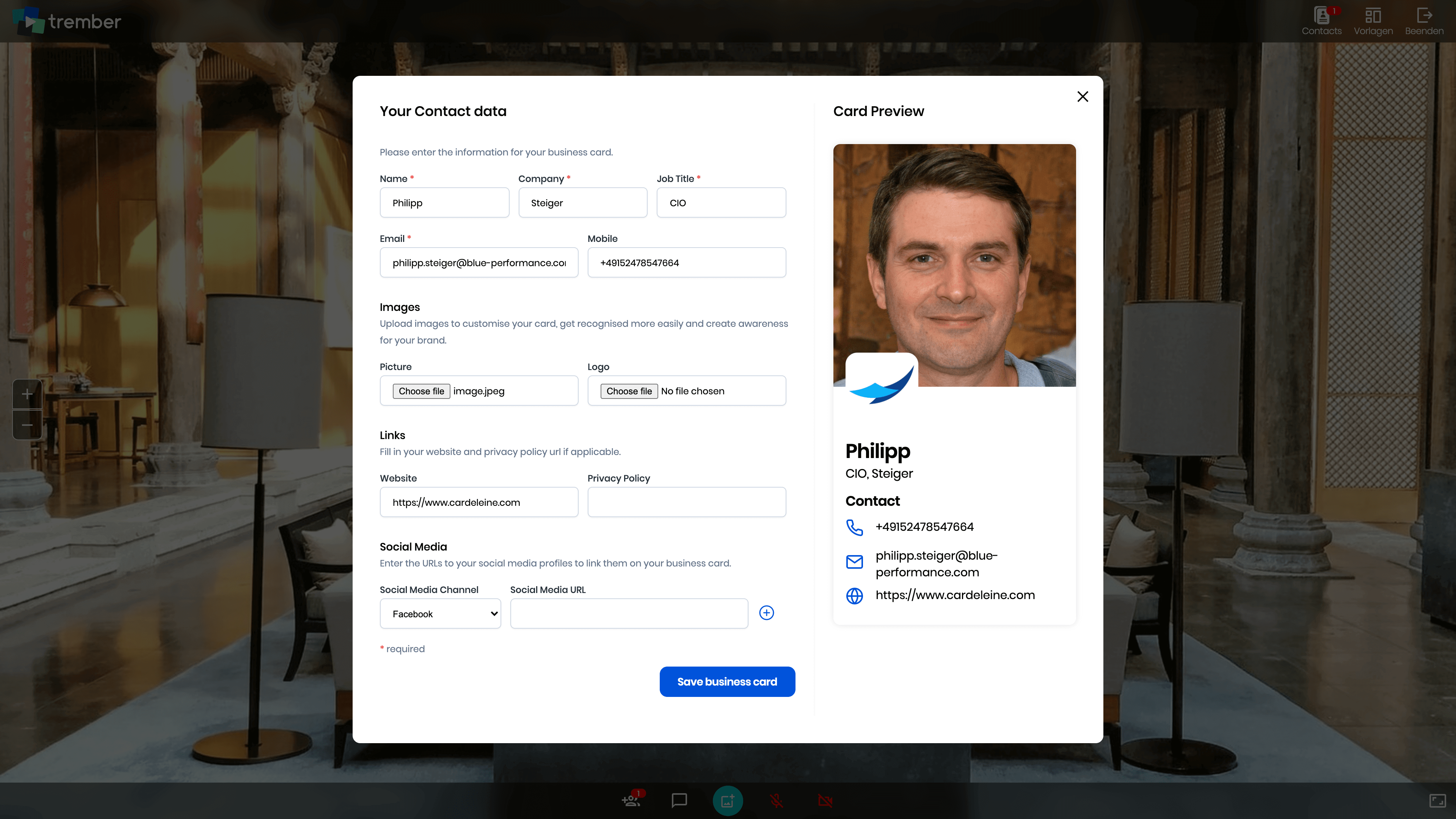 We've build various enhancement to the existing user experience. Learn how to implement Cardeleine's digital business cards demo into trember's digital meeting rooms.